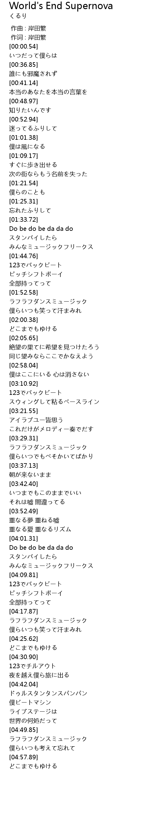 | [00:00.00] | 作曲 : 岸田繁 |