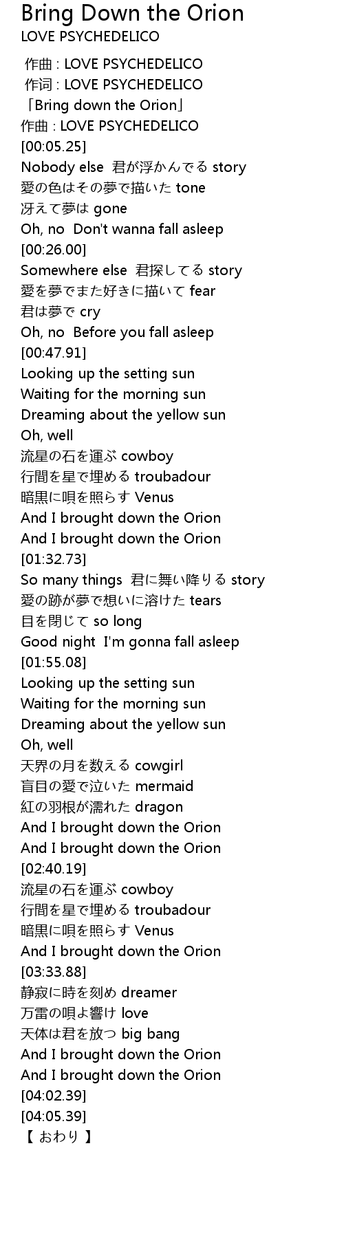 | [00:00.341] | 作词 : LOVE PSYCHEDELICO |