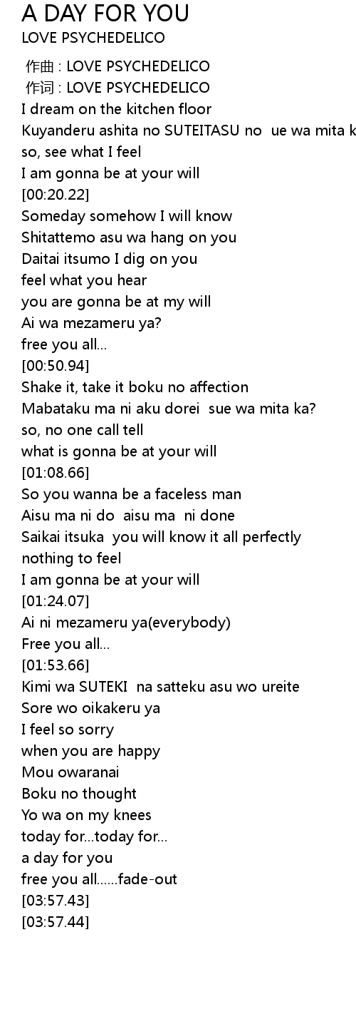 | [00:01.00] | zuò cí : LOVE PSYCHEDELICO |