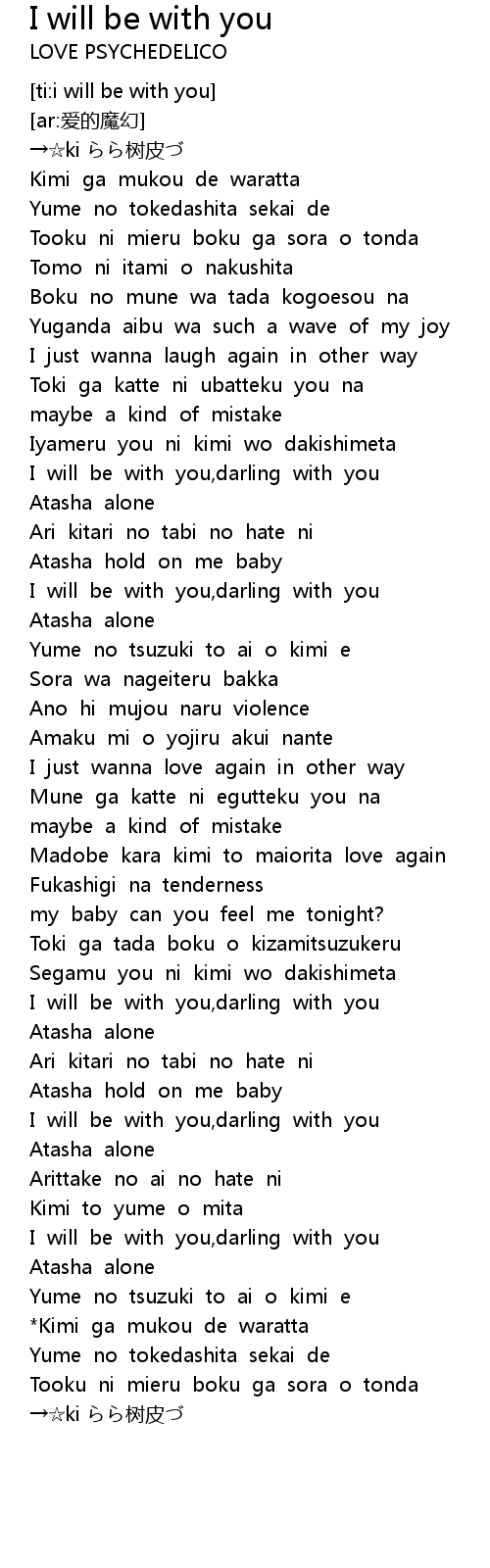 | [02:00.624] | Madobe kara kimi to maiorita love again |
