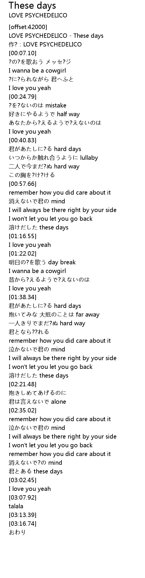 | [00:00.00] | LOVE PSYCHEDELICO These days |