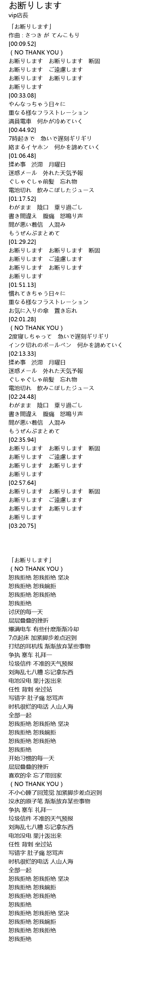 | [02:36.51] | お断りします お断りします 断固 |