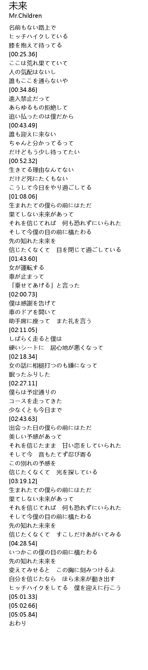 | [04:55.57] | ヒッチハイクをしてる 僕を迎えに行こう |