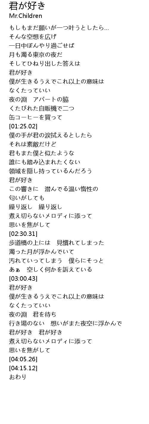 | [03:23.18] | 僕が生きるうえでこれ以上の意味は |