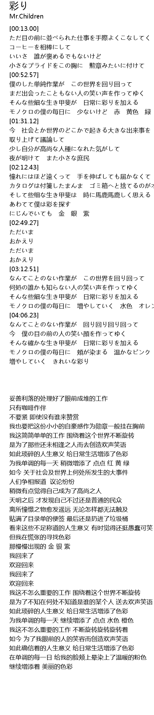 | [02:40.06] | あわてて僕は彩を探す |