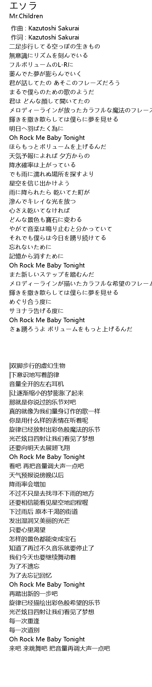 | [00:01.00] | zuò cí : Kazutoshi Sakurai |