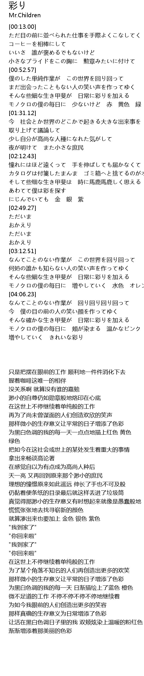 | [01:20.25] | モノクロの僕の每日に 少ないけど 赤 黄色 緑 |