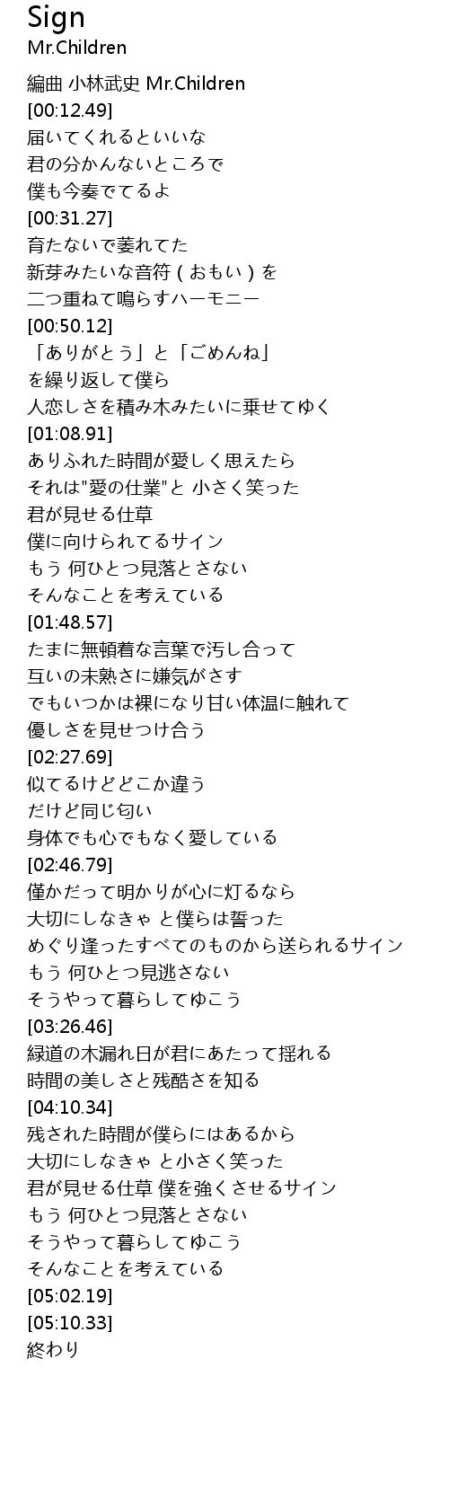 | [00:10.49] | 編曲 小林武史 Mr.Children |