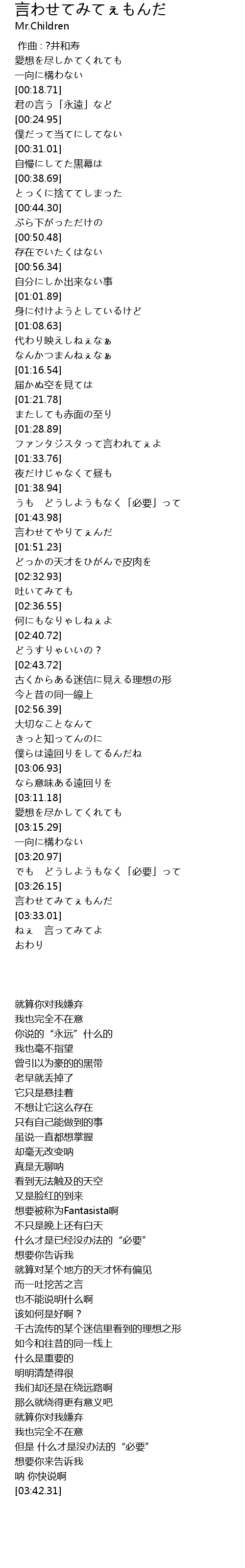 | [03:27.03] | 言わせてみてぇもんだ |