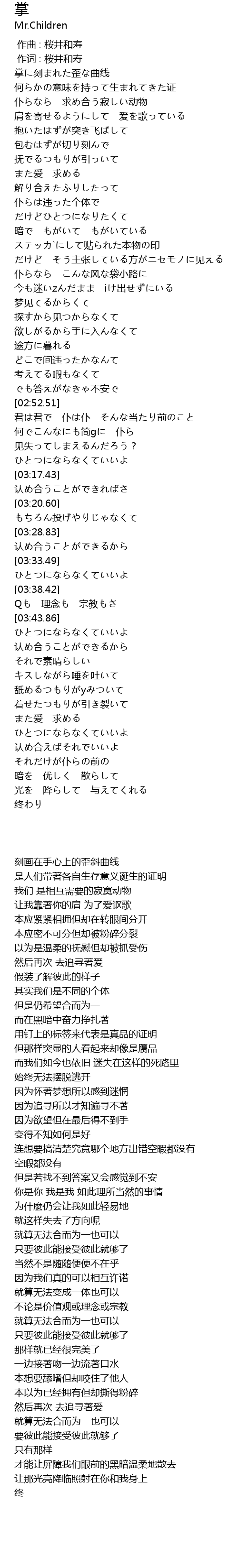 | [00:24.40] | 掌に刻まれた歪な曲线 |