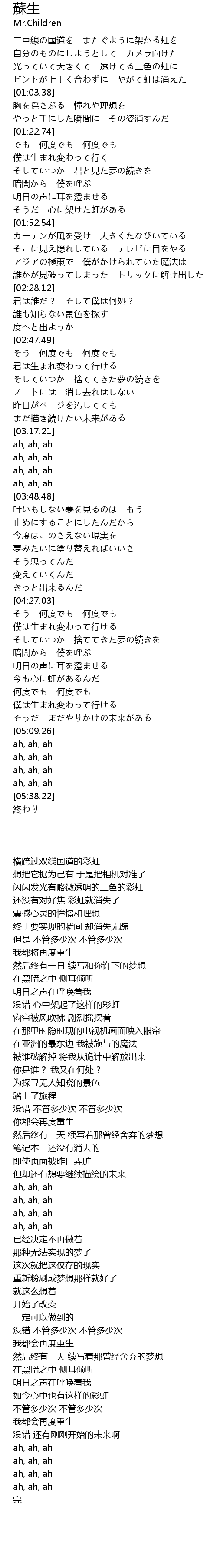 | [00:55.51] | ビントが上手く合わずに やがて虹は消えた |