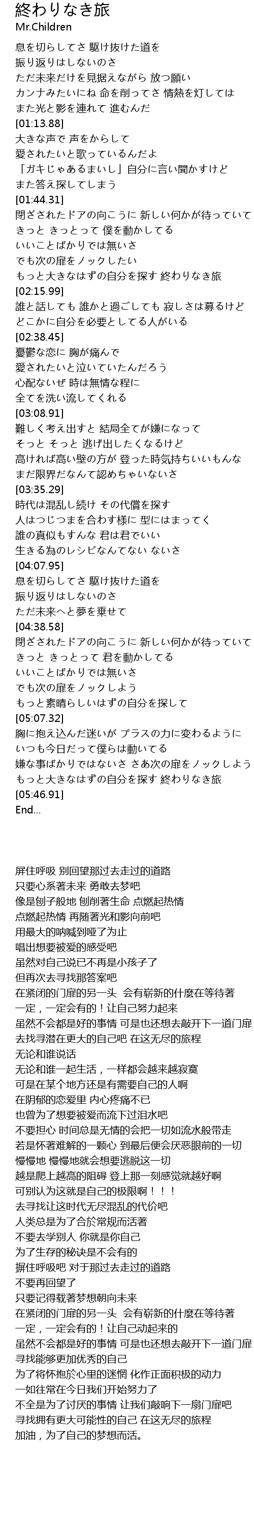 | [02:04.73] | もっと大きなはずの自分を探す 終わりなき旅 |