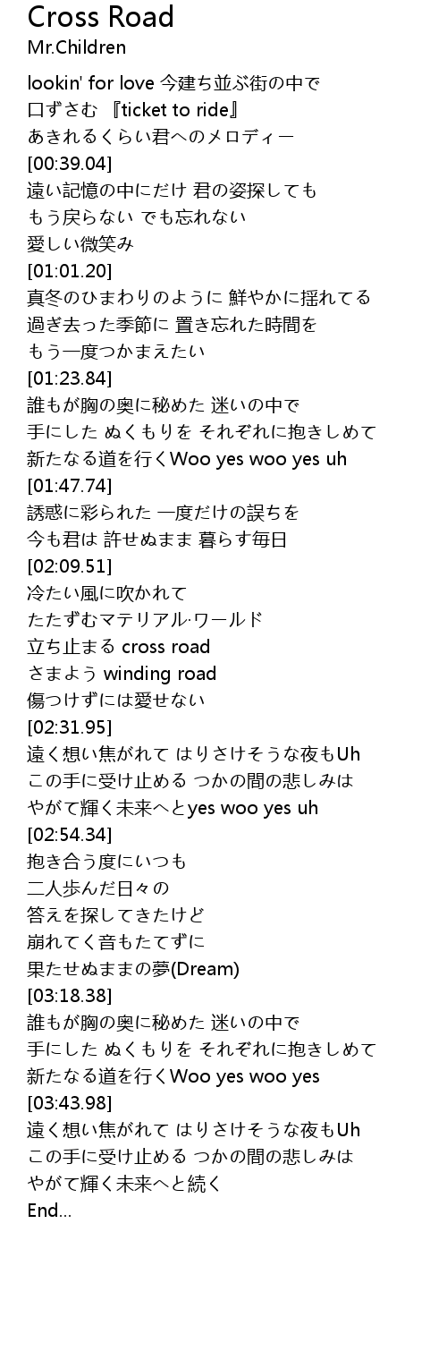 | [02:21.77] | 立ち止まる cross road |