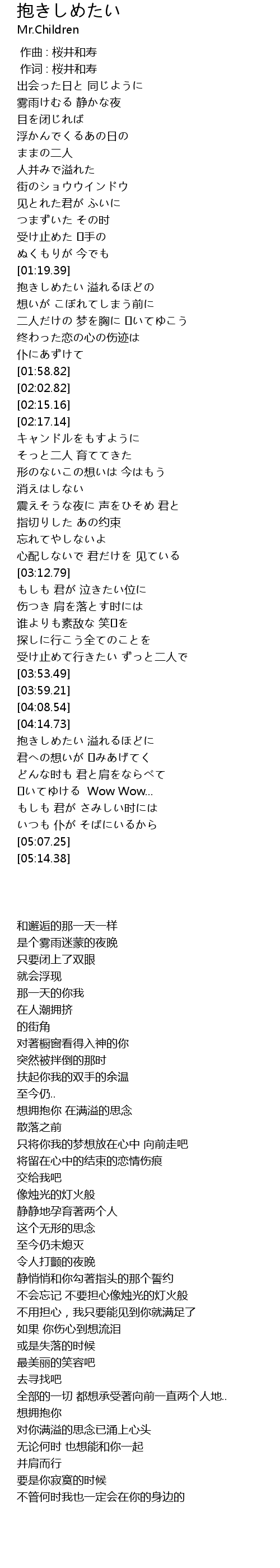| [04:20.68] | 抱きしめたい 溢れるほどに |