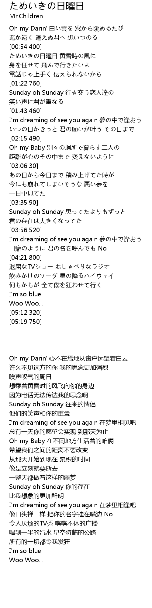 | [03:35.410] | Sunday oh Sunday 思ってたよりもずっと |