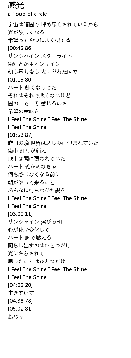 | [03:50.93] | I Feel The Shine I Feel The Shine |