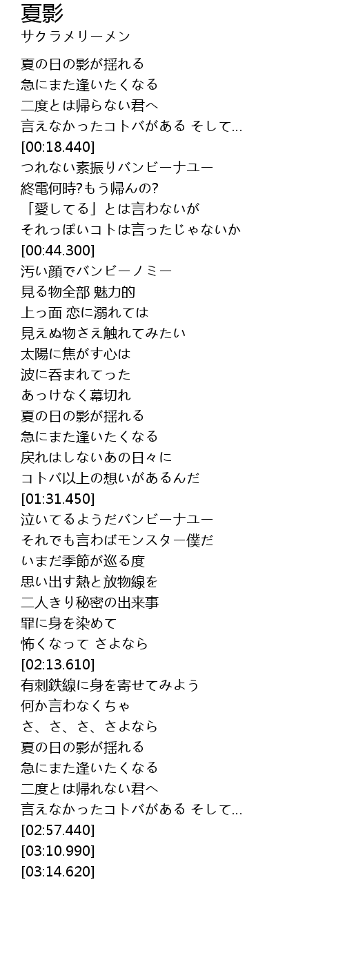 | [02:38.640] | 夏の日の影が揺れる |