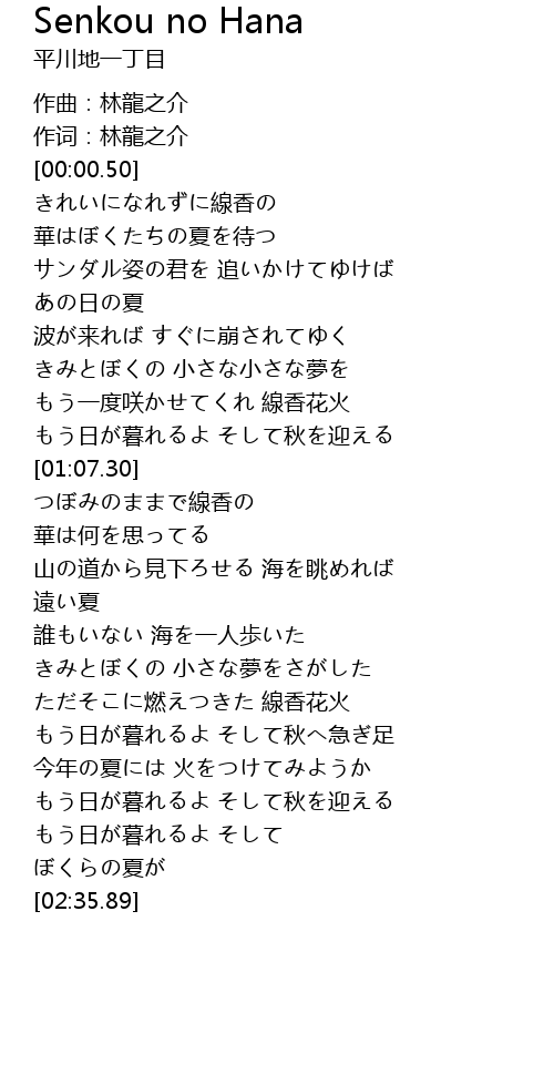 | [00:50.61] | もう一度咲かせてくれ 線香花火 |