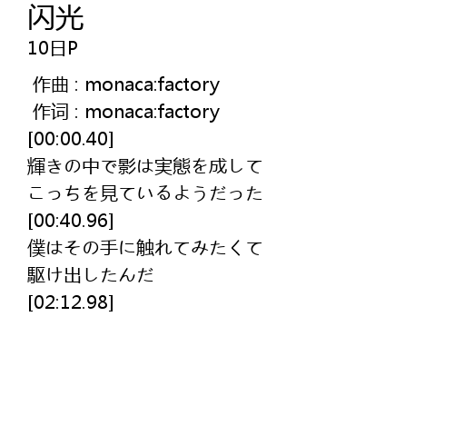 | [00:00.13] | 作词 : monaca:factory |