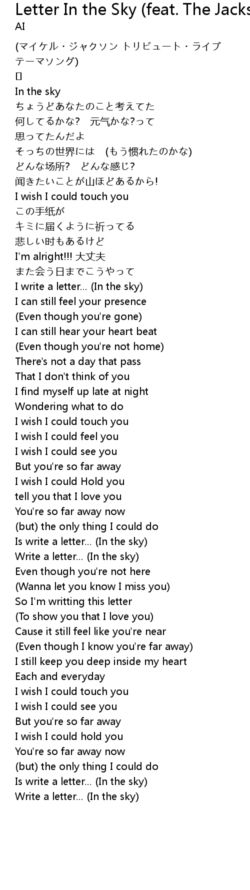 | Song | Letter In the Sky (feat. The Jacksons) |