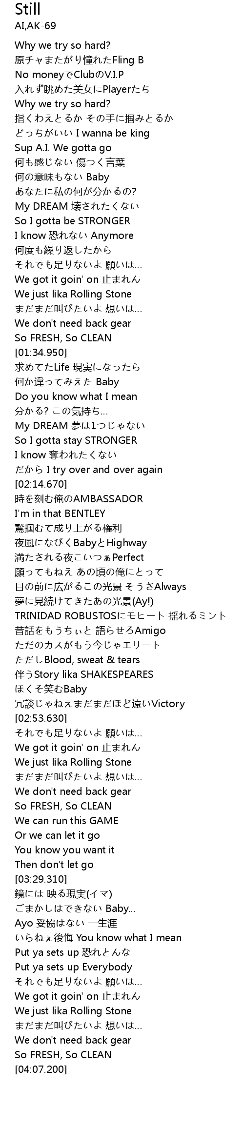 | [03:01.150] | We got it goin' on 止まれん |