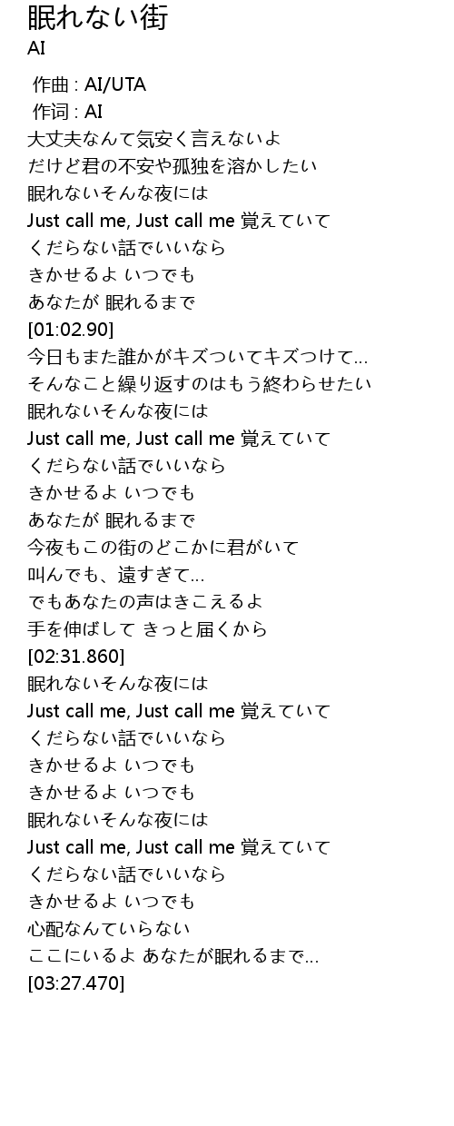 | [02:38.390] | Just call me, Just call me 覚えていて |