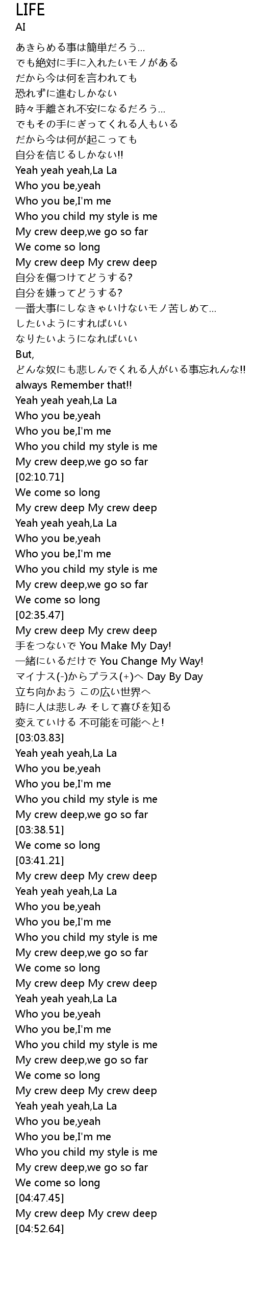 | [04:48.16] | My crew deep My crew deep |