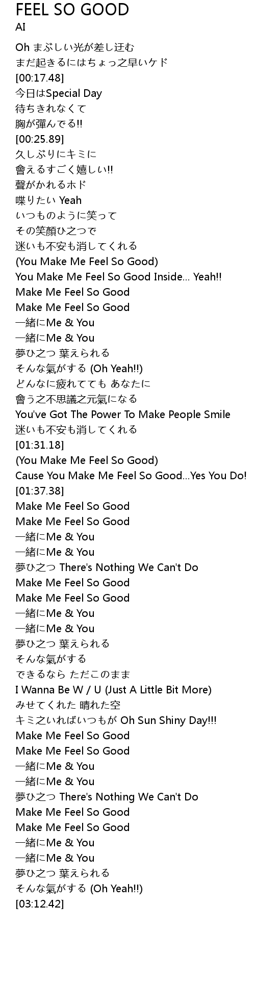 | [00:49.08] | You Make Me Feel So Good Inside... Yeah!! |