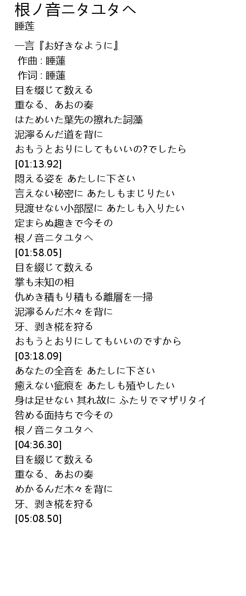 | [01:45.07] | 根ノ音ニタユタヘ |