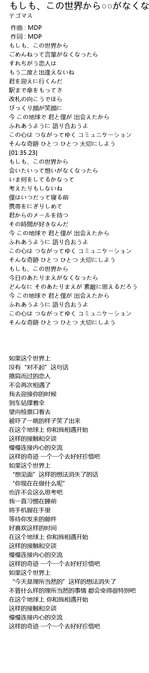 | [03:47.08] | 今 この地球で 君と僕が 出会えたから |