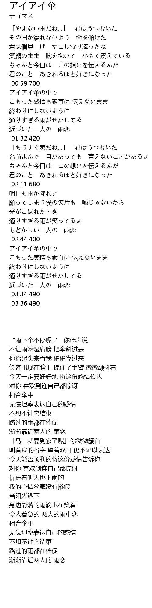 | [03:00.420] | アイアイ傘の中で |