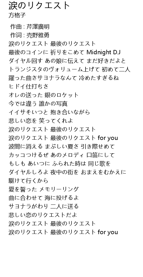 | [03:06.99] | 涙のリクエスト 最後のリクエスト for you |