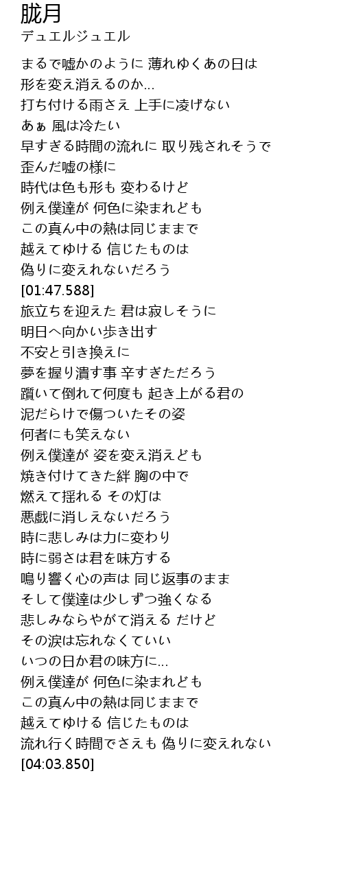 | [03:54.220] | 流れ行く時間でさえも 偽りに変えれない |