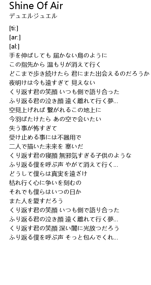 | [01:53.57] | 今羽ばたけたら あの空で会いたい |