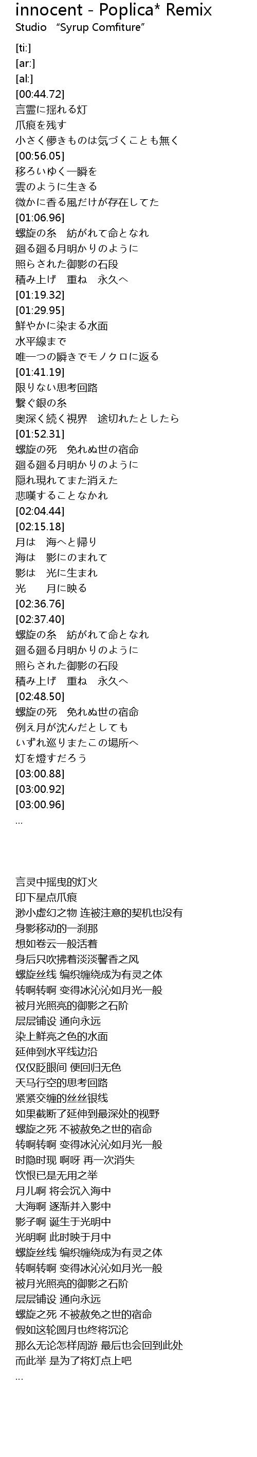 | [00:44.82] | 言霊に揺れる灯 |