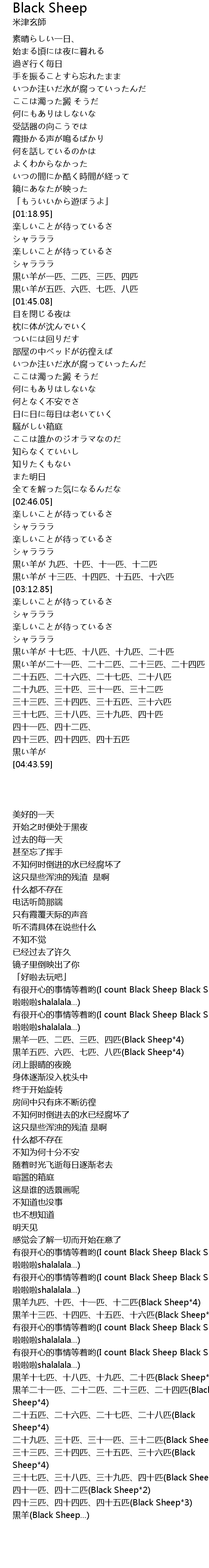 | [03:06.95] | 黒い羊が 十三匹、十四匹、十五匹、十六匹 |