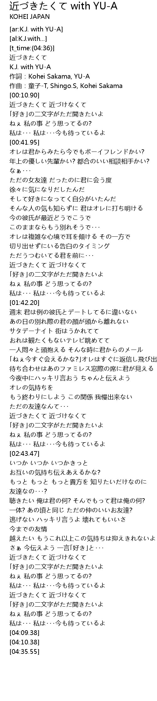 | [00:05.13] | 作詞:Kohei Sakama, YU-A |