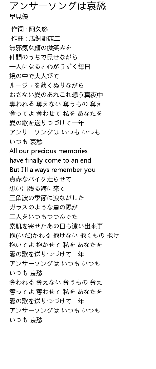 | [03:12.954] | アンサーソングは いつも いつも |