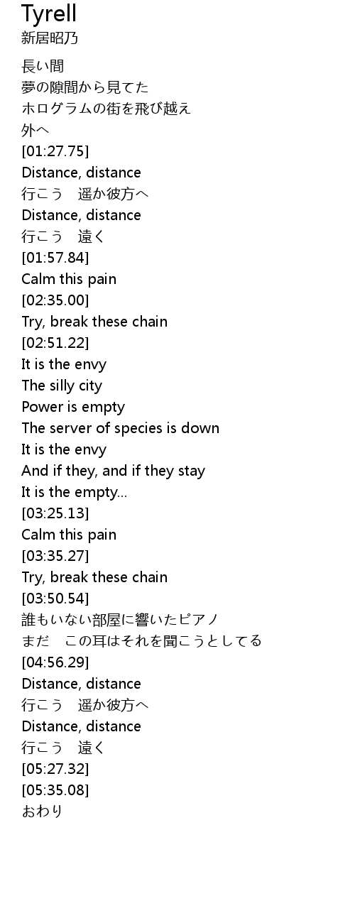 | [05:11.73] | Distance, distance |