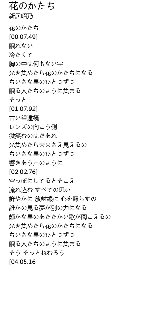 | [00:00.92] | 花のかたち |