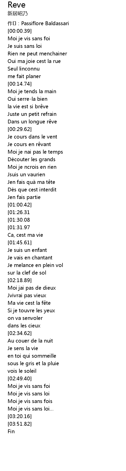 | [00:27.04] | Dans un longue rêve |
