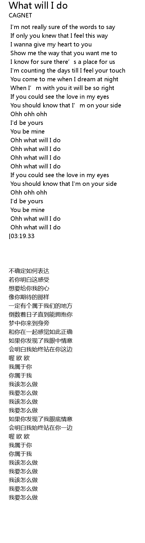 | [03:30.62][03:19.33][03:09.04] | Ohh what will I do |