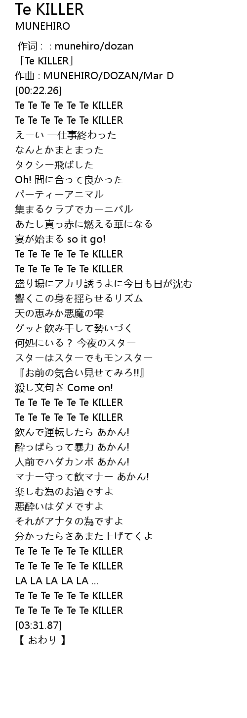 | [03:10.98] | Te Te Te Te Te Te KILLER |
