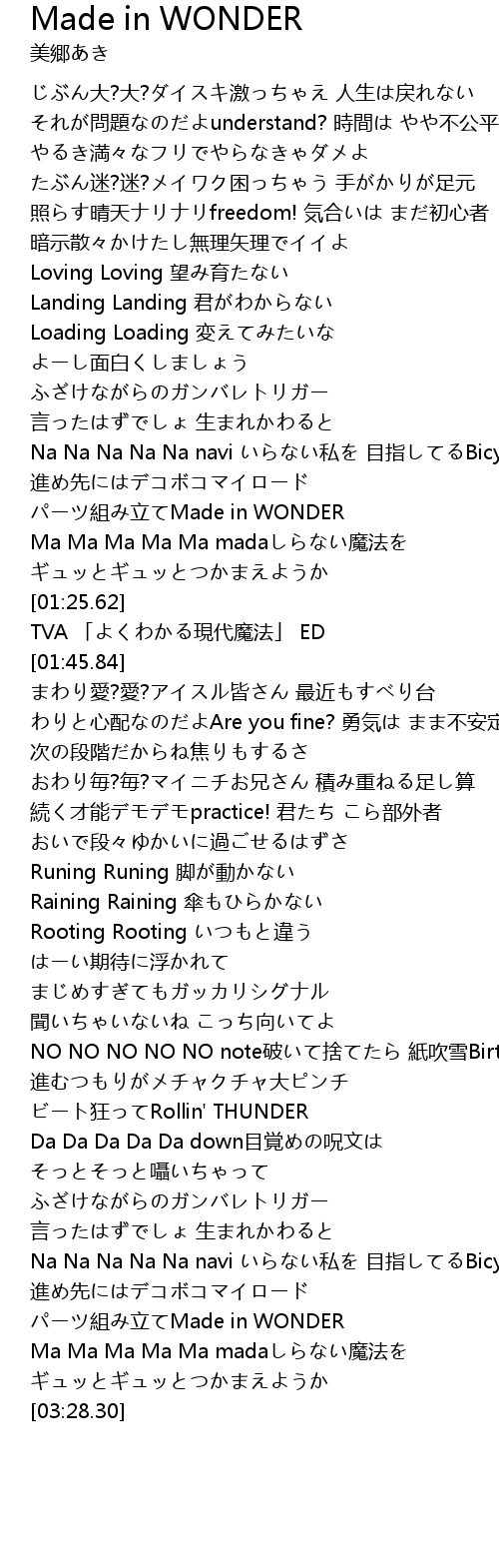 | [03:17.23] | パーツ組み立てMade in WONDER |