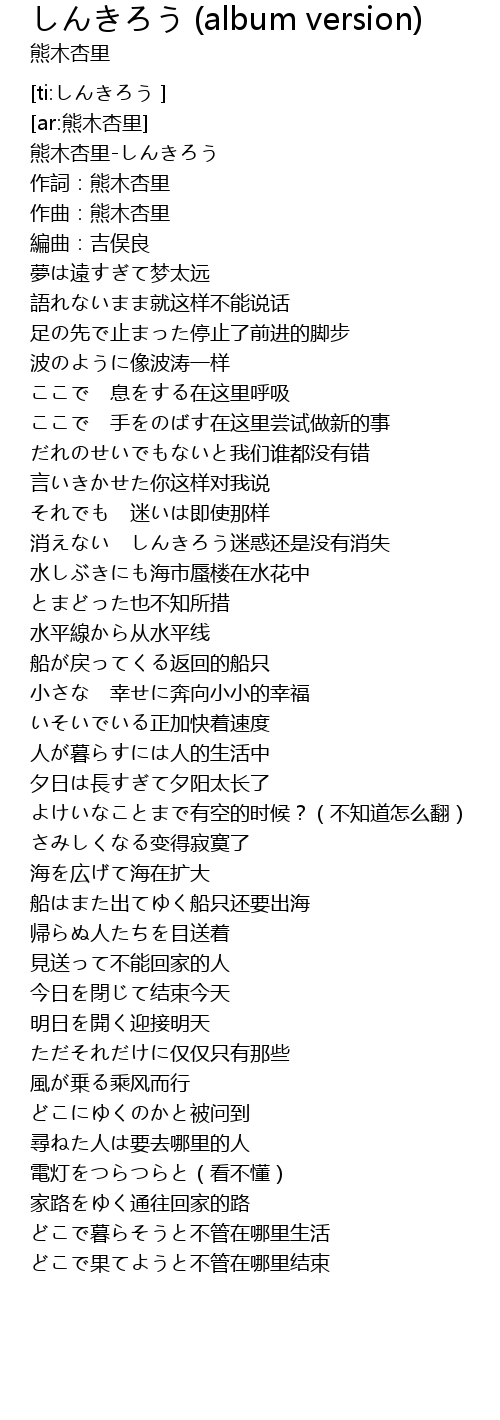| [00:02.66] | 熊木杏里-しんきろう |