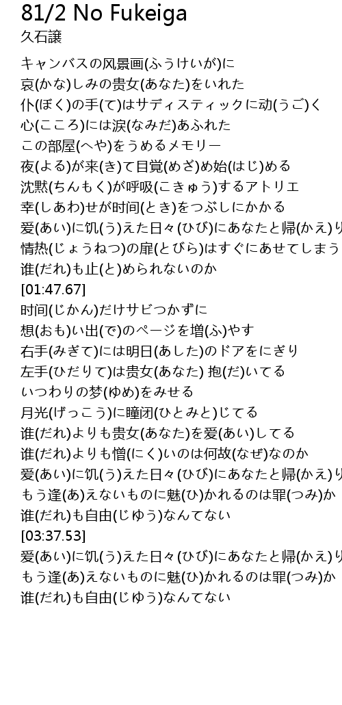 | [02:20.39] | 想(おも)い出(で)のページを増(ふ)やす |