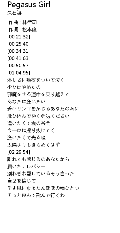 | [03:48.59][00:50.57] | 翼の生えた白馬になる |