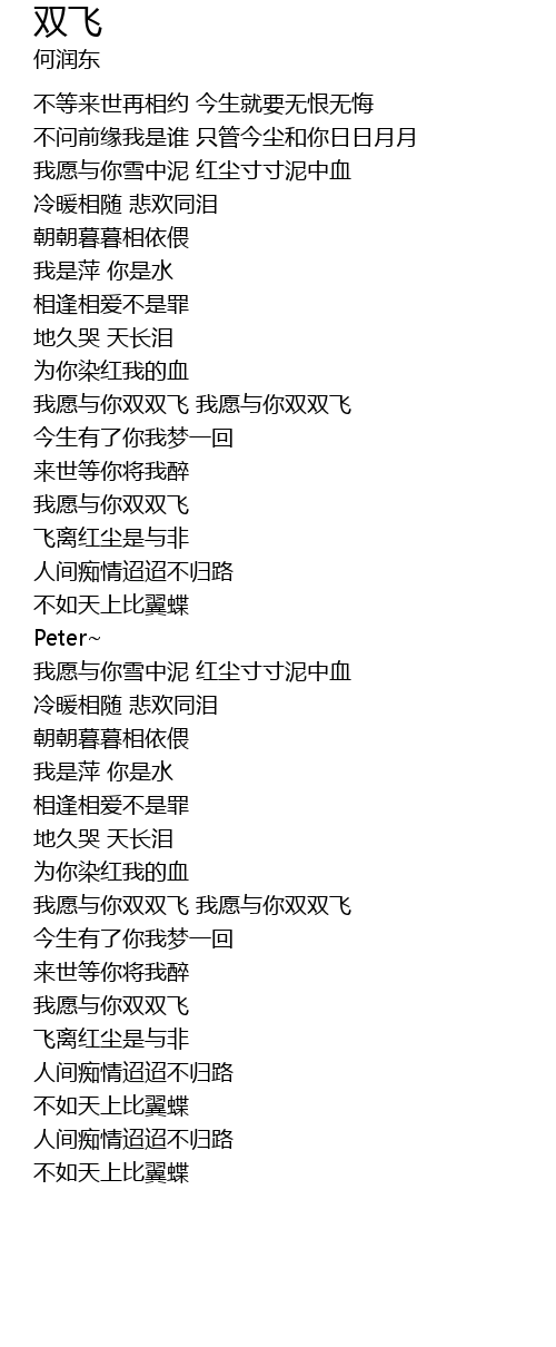 | [03:00.700] | 我愿与你双双飞 我愿与你双双飞 |