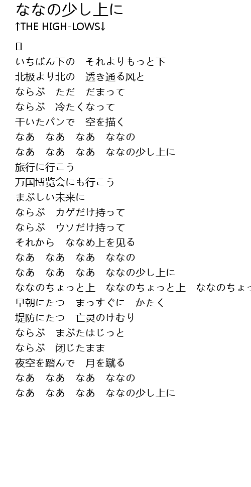 | なあ なあ なあ ななの少し上に |