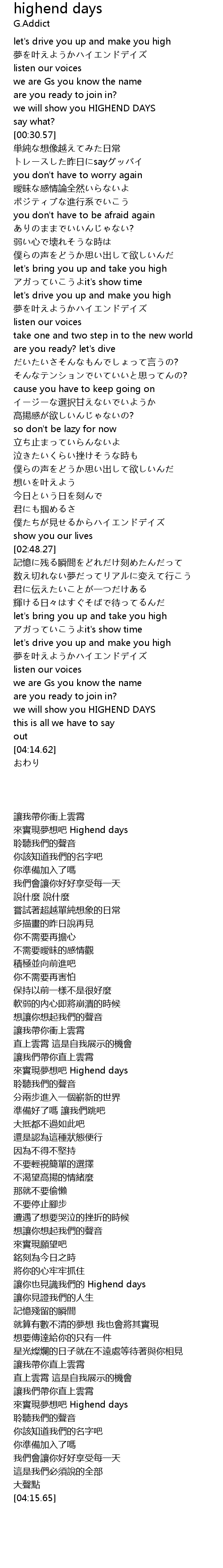 | [02:39.46] | 僕たちが見せるからハイエンドデイズ |